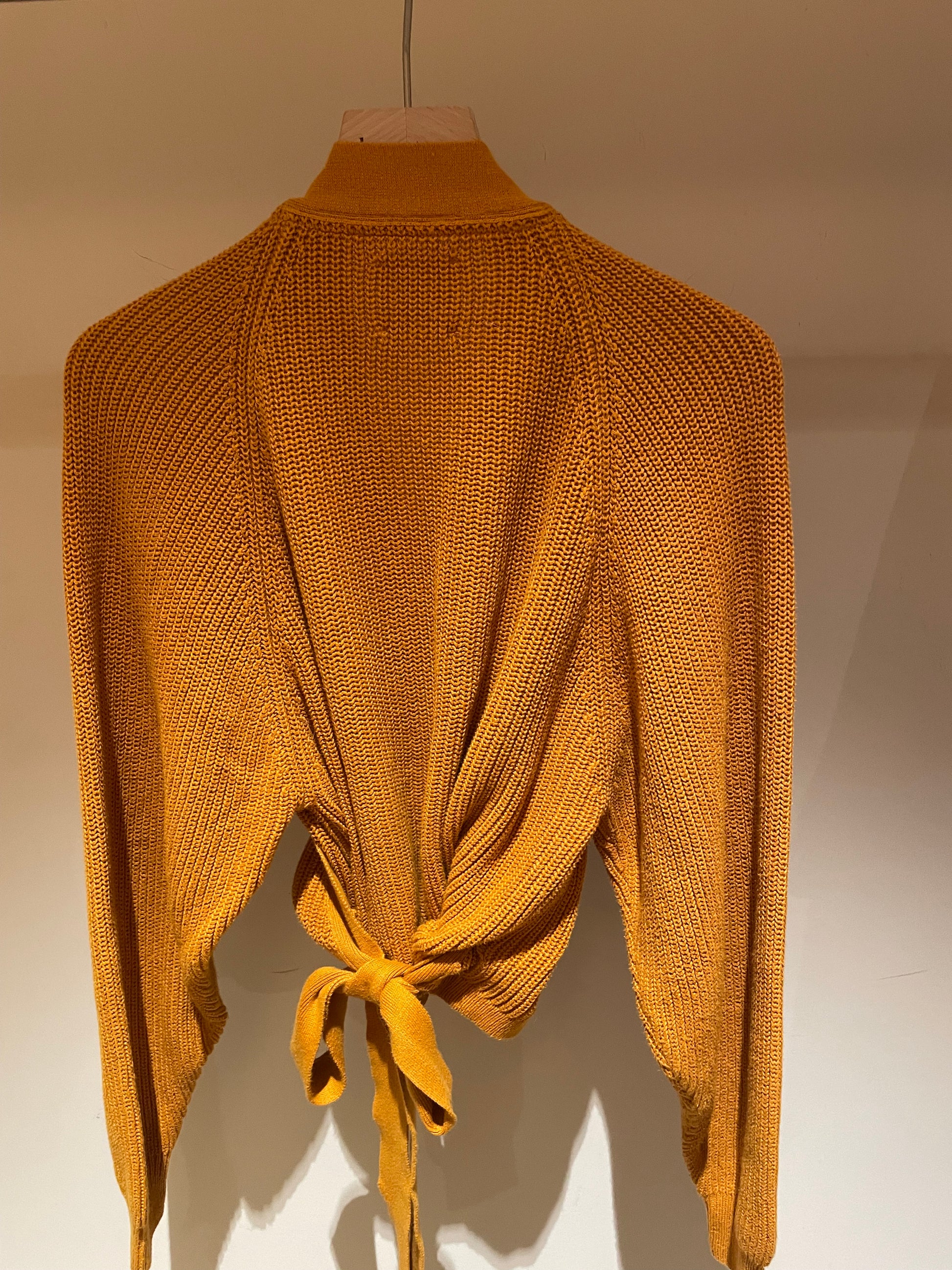 A ballet style wrap cardigan knitted in a tuck stitch. The Composure Cardigan has a generous fit through the body, and is slightly cropped in length. A versatile piece that can be worn loose, or cinched in at the waist with narrow tie fastenings.