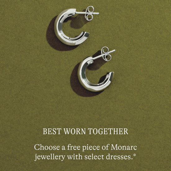 T&C's: Receive a free Monarc Jewellery piece with any selected dress style over $249. Discount is automatically applied at checkout when both the dress and Monarc piece are added to cart. Discount is only available while stock lasts and cannot be used in conjunction with any other offer, loyalty reward or applied to previous purchases. Any dresses purchased using the discount are eligible for return or exchange in accordance with our return policy. If you return the dress for a refund or store credit, you must also return the free Monarc jewellery piece, or its value will be deducted from your refund/credit.