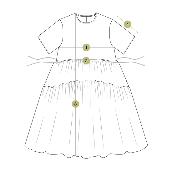 These individual product measurements have been taken from the garment pattern. The bust, waist, waistband, hip & hem measurements have been doubled to show the full circumference.