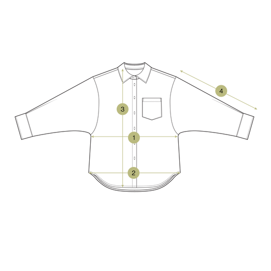 An oversized fit shirt with a drop shoulder and exaggerated batwing sleeve. The Nova Shirt has a classic shirt collar, wide cuffs and an Agoya shell button closure through the front. Featuring a playful polka dot printed onto organic cotton twill.