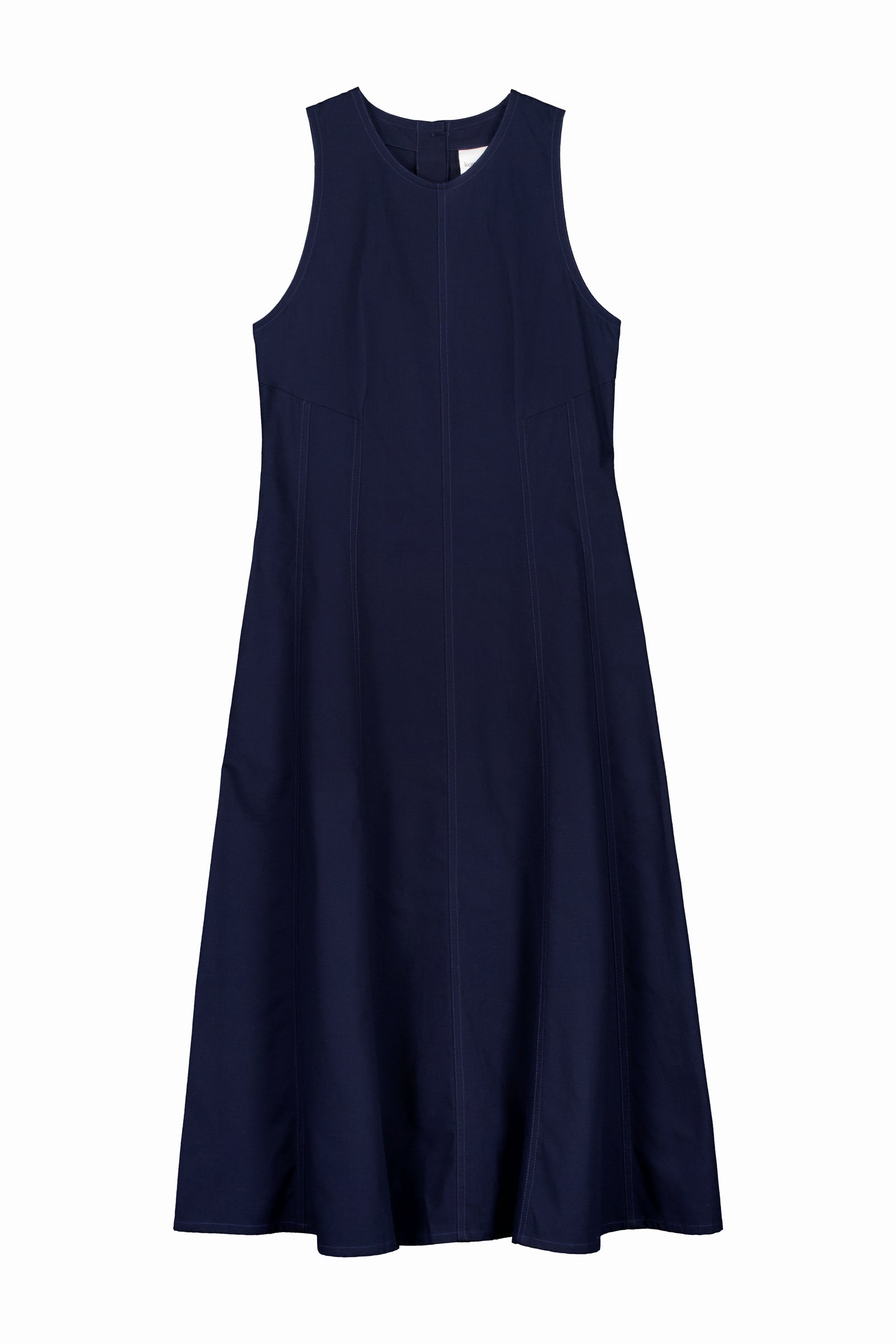 The Framework Dress is shaped through panelling at the torso and gently flares from the waist, creating a flattering silhouette with a standard fit. Made from organic cotton canvas, it features side seam pockets and nut buttons at the back, and finishes at a midi length. Both practical and elegant, this dress is the perfect wardrobe staple.