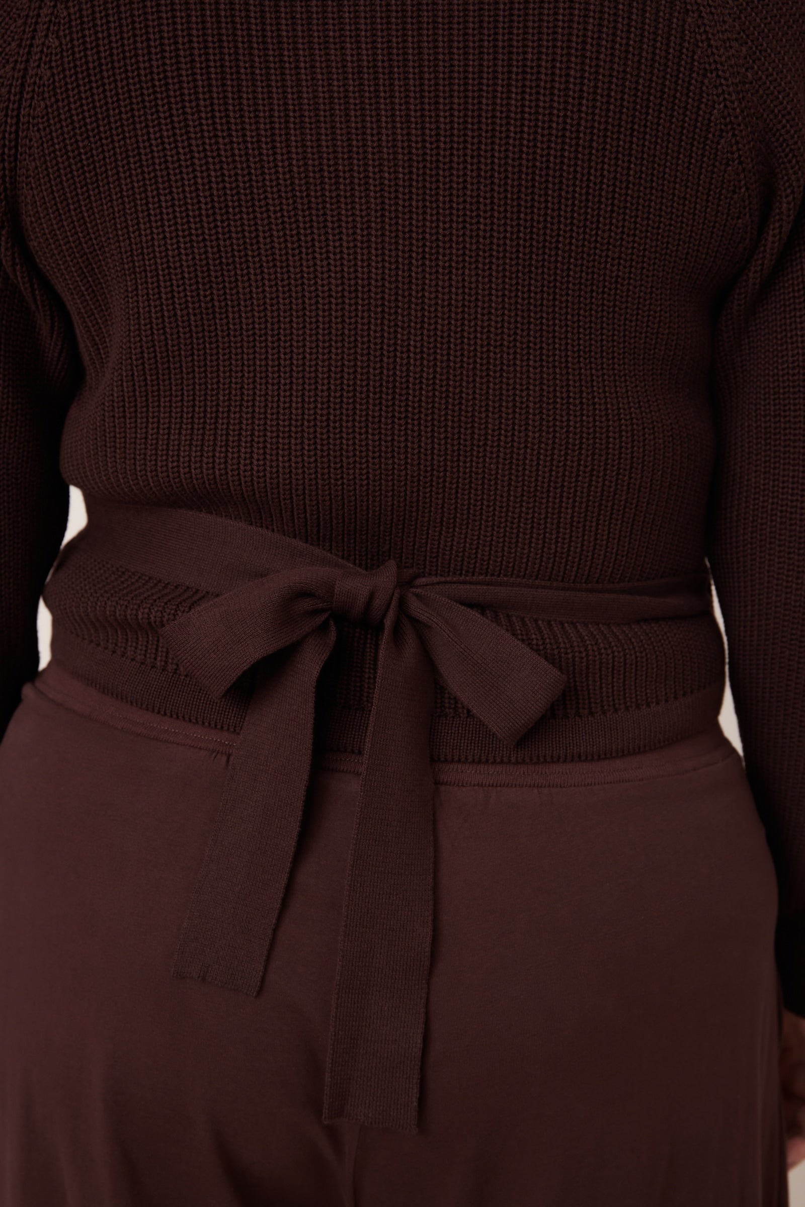 A ballet style wrap cardigan crafted from organic cotton and knitted in a tuck stitch. The Composure Cardigan features a generous fit through the body and a slightly cropped length. Versatile and elegant, it can be worn loose or cinched in at the waist with narrow tie fastenings. Perfect for layering over your favourite dress or jeans.