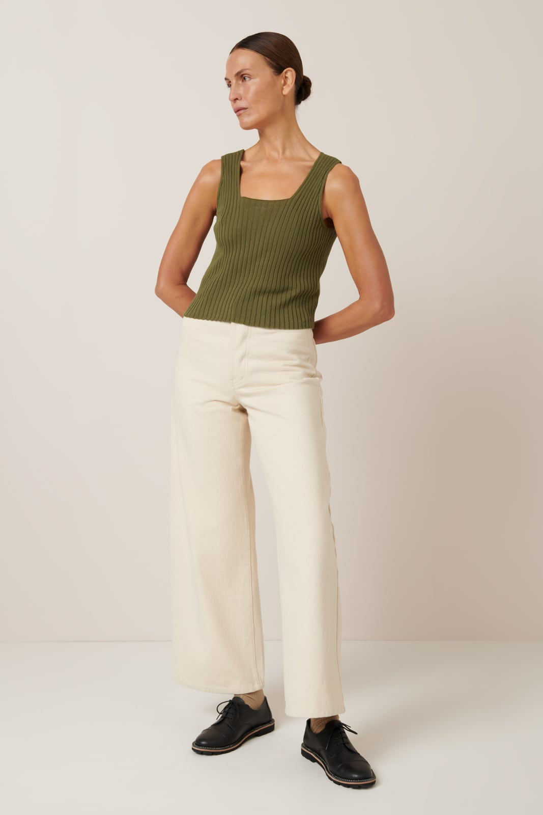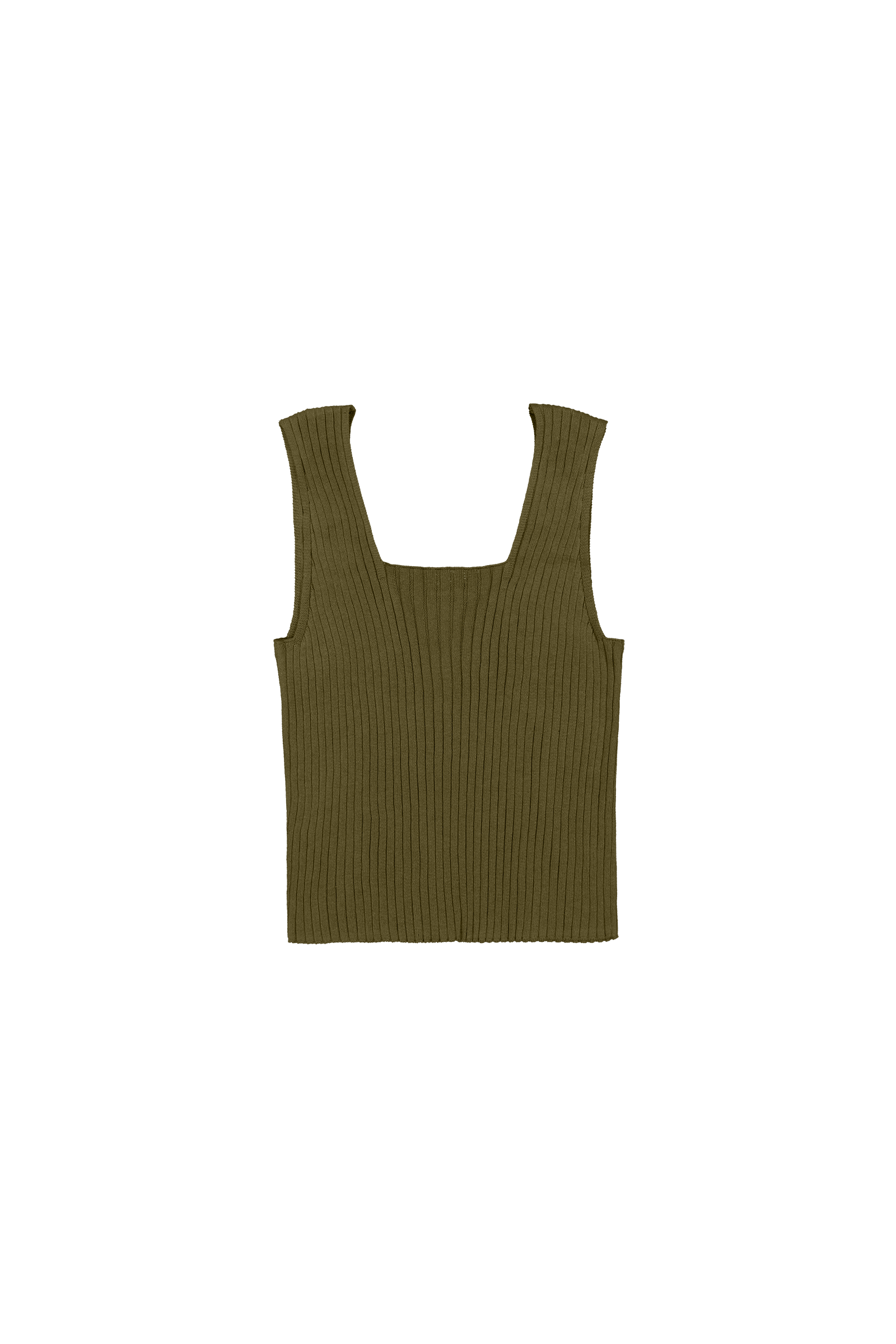 Knitted in organic cotton rib, the Delta Singlet has a standard fit, gently shaping to the body. It features a square neckline and wide straps - a playful contrast with the softness of the rib.