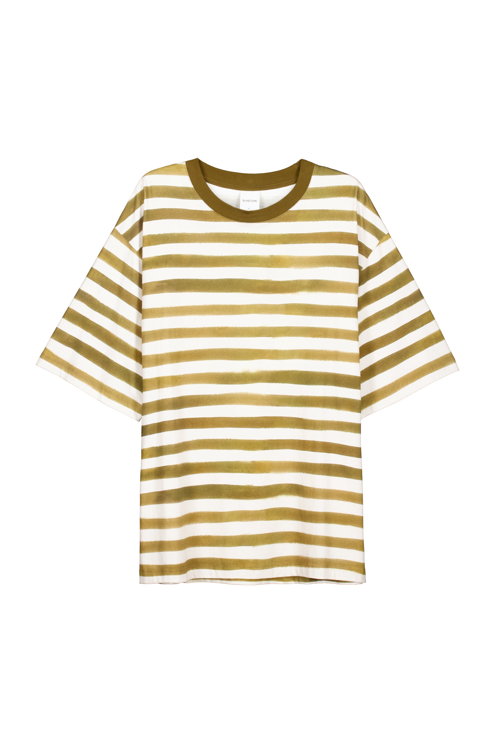 Designed with a standard fit and relaxed drop shoulders, the Box Tee offers a boxy silhouette that makes it an everyday essential. Made from soft midweight organic cotton jersey, it features our hand-painted Brushstroke Stripe print — an artful take on a traditional breton stripe.