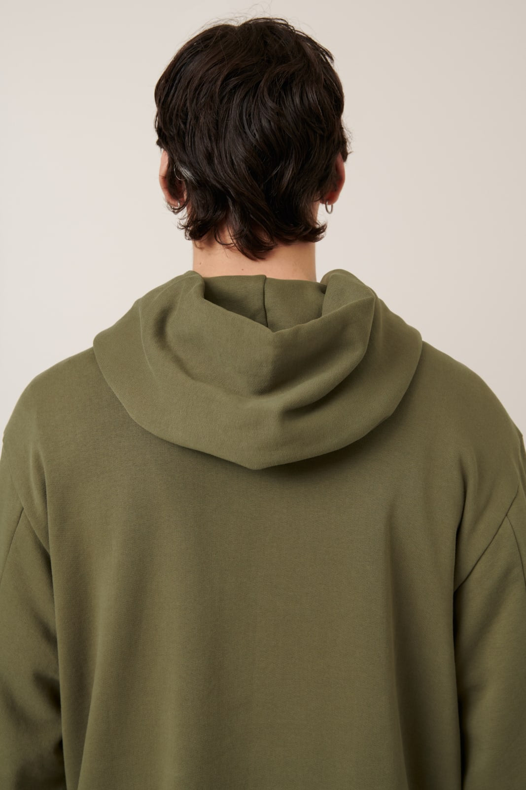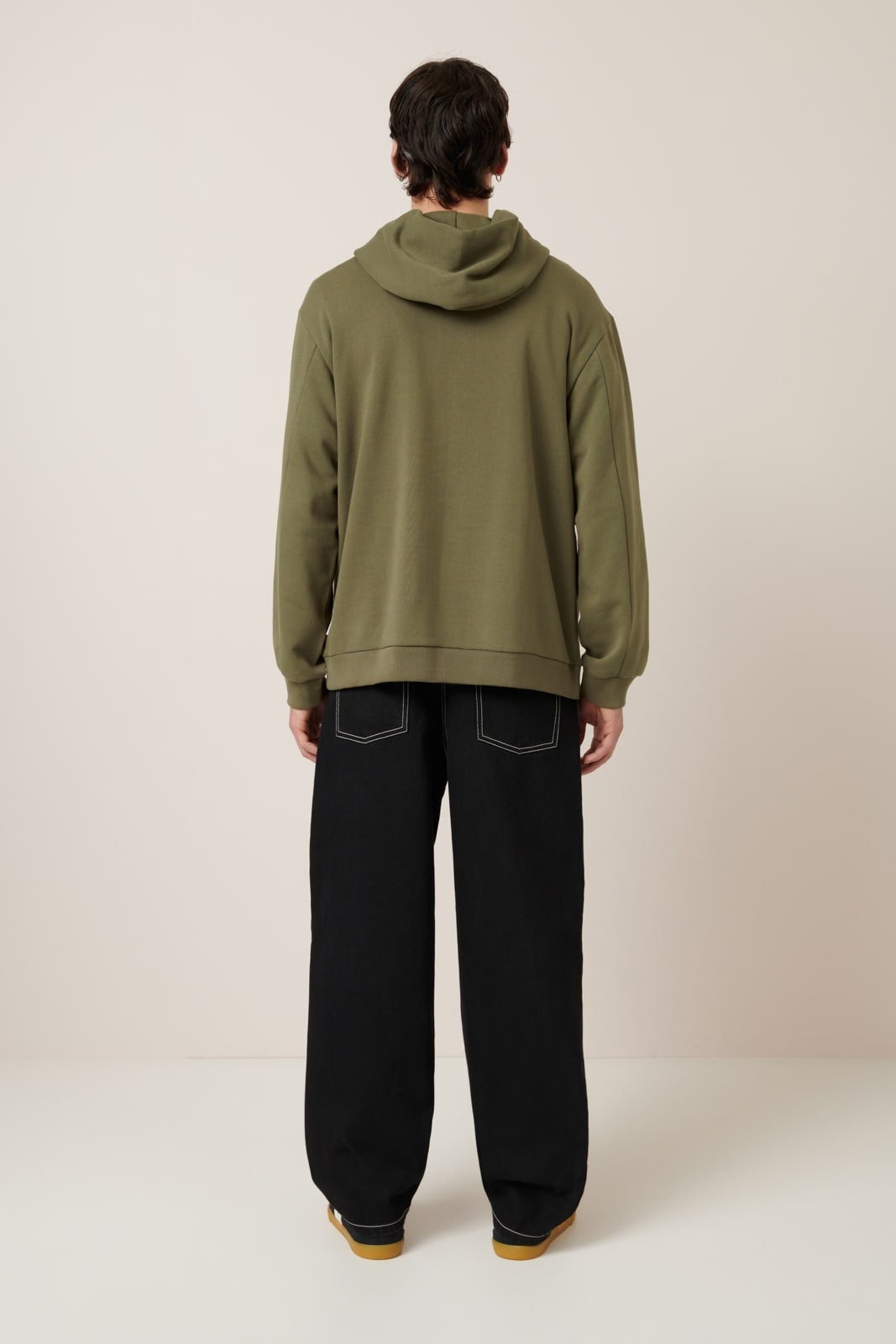 A casual hoodie with a subtle dropped shoulder, contrast cotton drawcord and detailed with panelling throughout. Finished with rib detail at cuffs and hem.