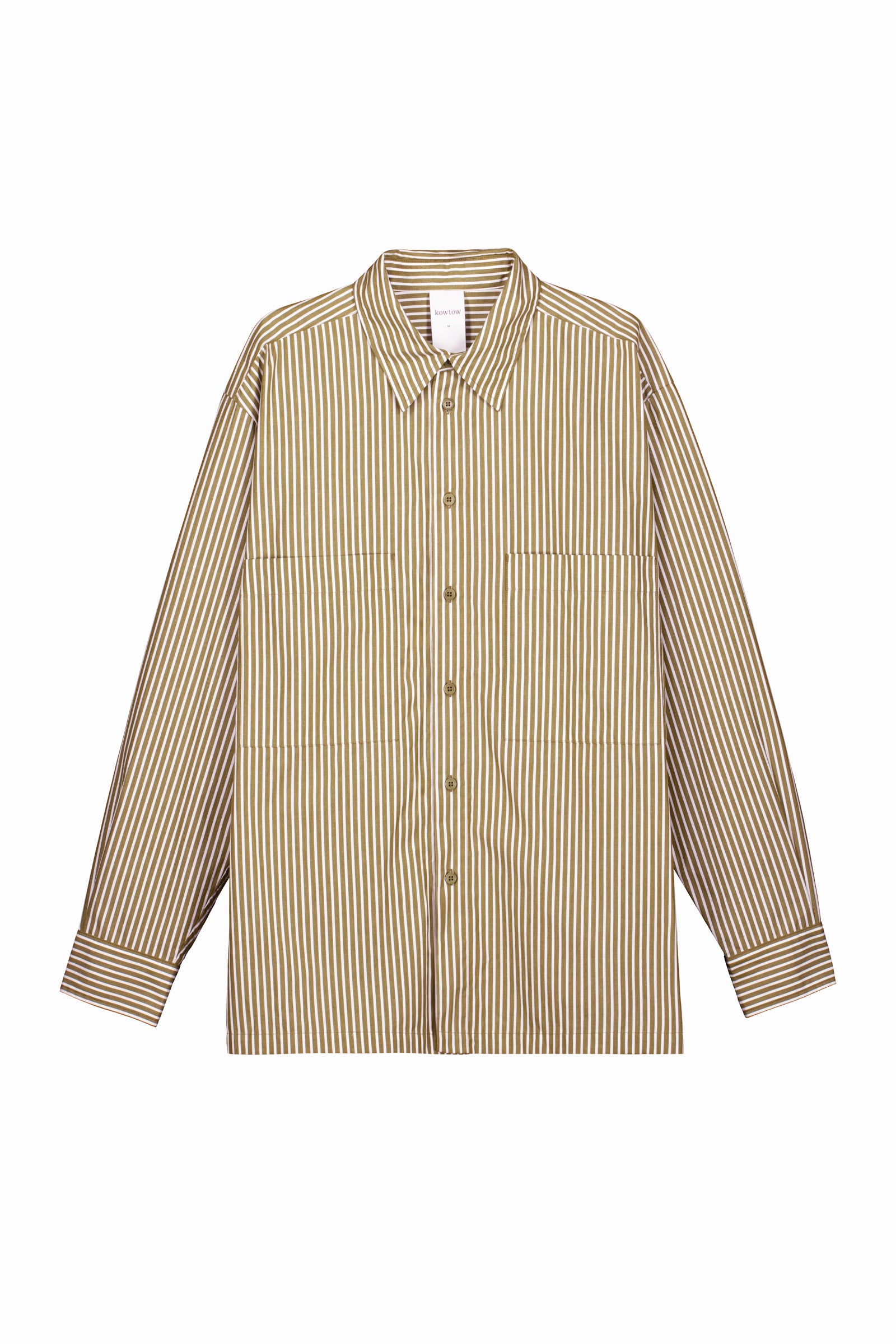 The Henry Shirt is crafted from a crisp organic cotton poplin in a classic stripe and features a relaxed, boxy fit. The shirt is cut with a straight hem and small side splits, with a back hem that's slightly longer for added interest. Oversized patch pockets and a large back yoke give it a utilitarian touch. Designed to be worn relaxed and untucked, it fastens with a nut buttons at the placket and cuffs for a refined finish.