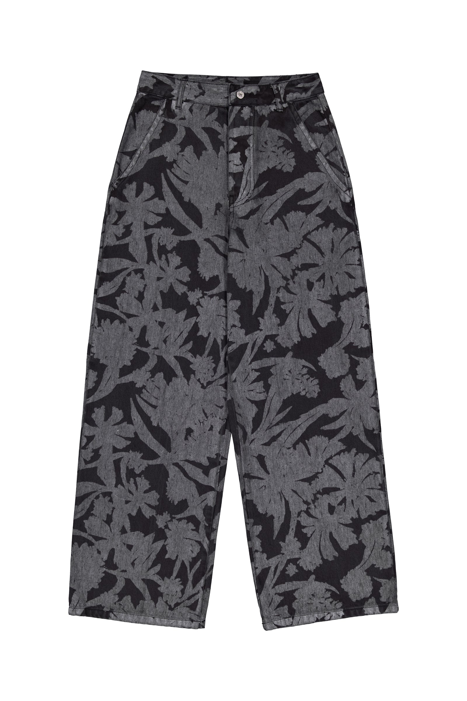 A wide leg jean with a relaxed silhouette, designed to sit high on the waist with a standard fit. The Utility Jeans feature oversized angled pockets and a concealed fly with nickel-free tacks. Made from midweight organic cotton in our Etched Denim, adding a playful touch to this versatile style.