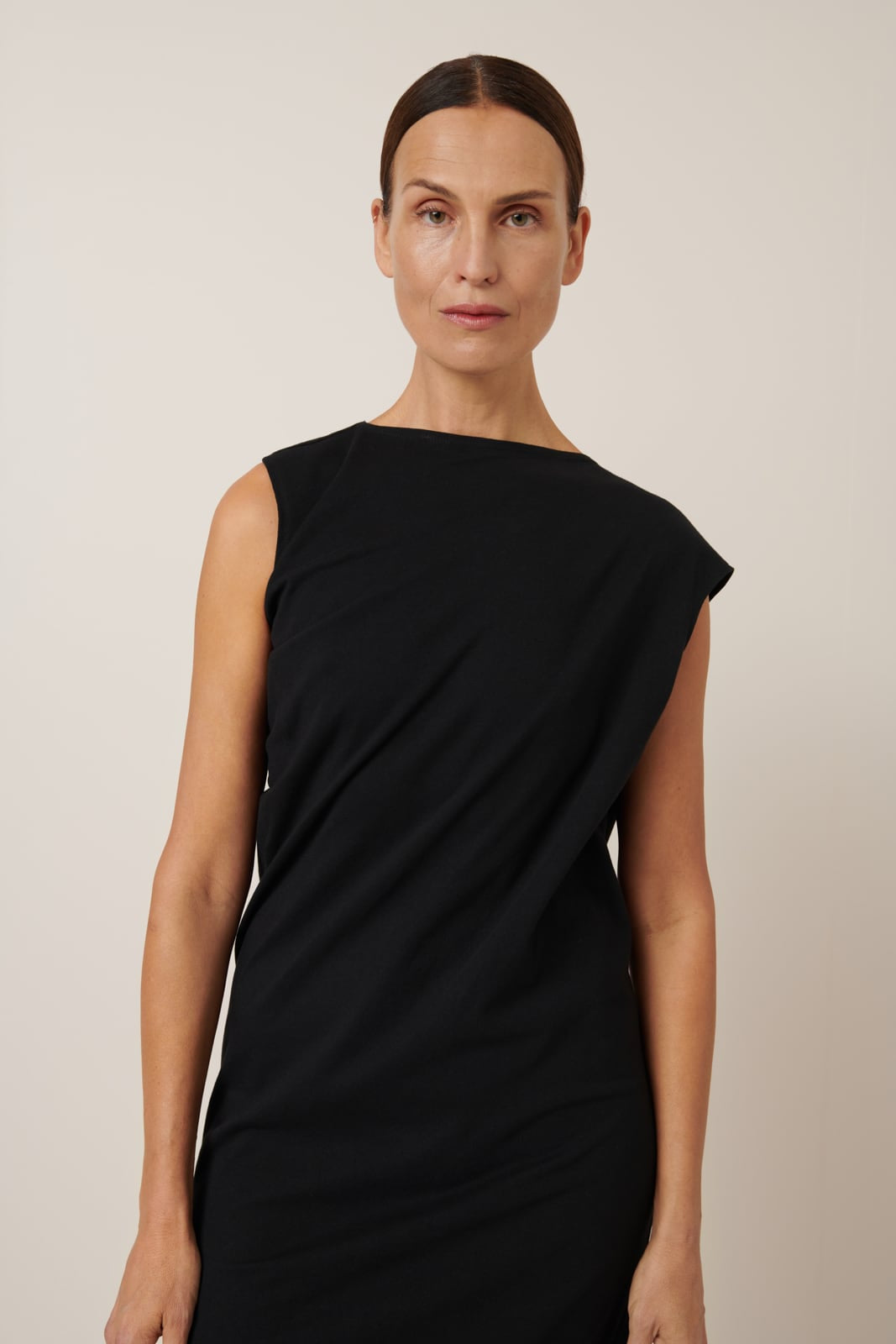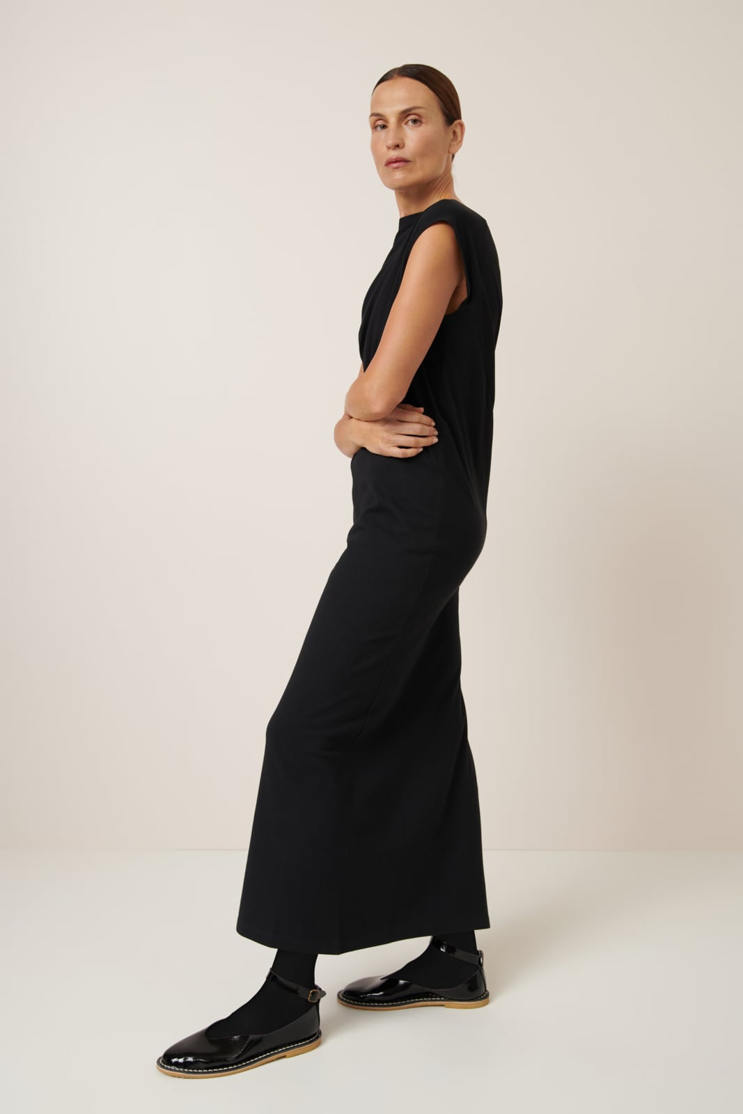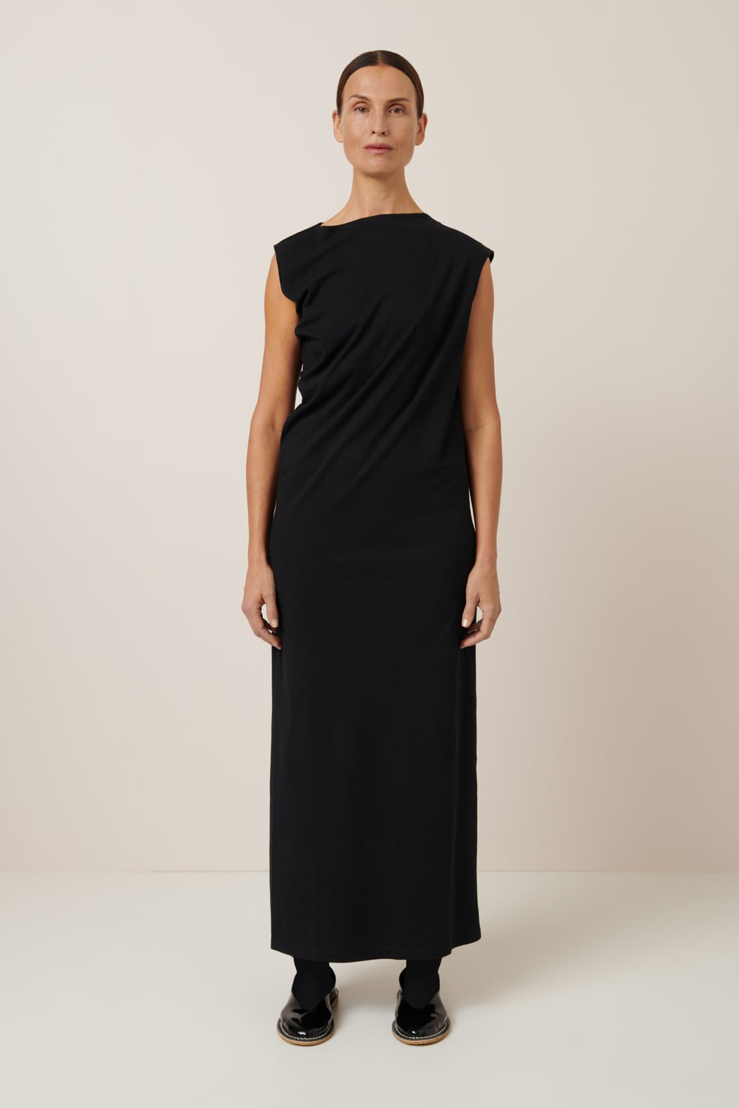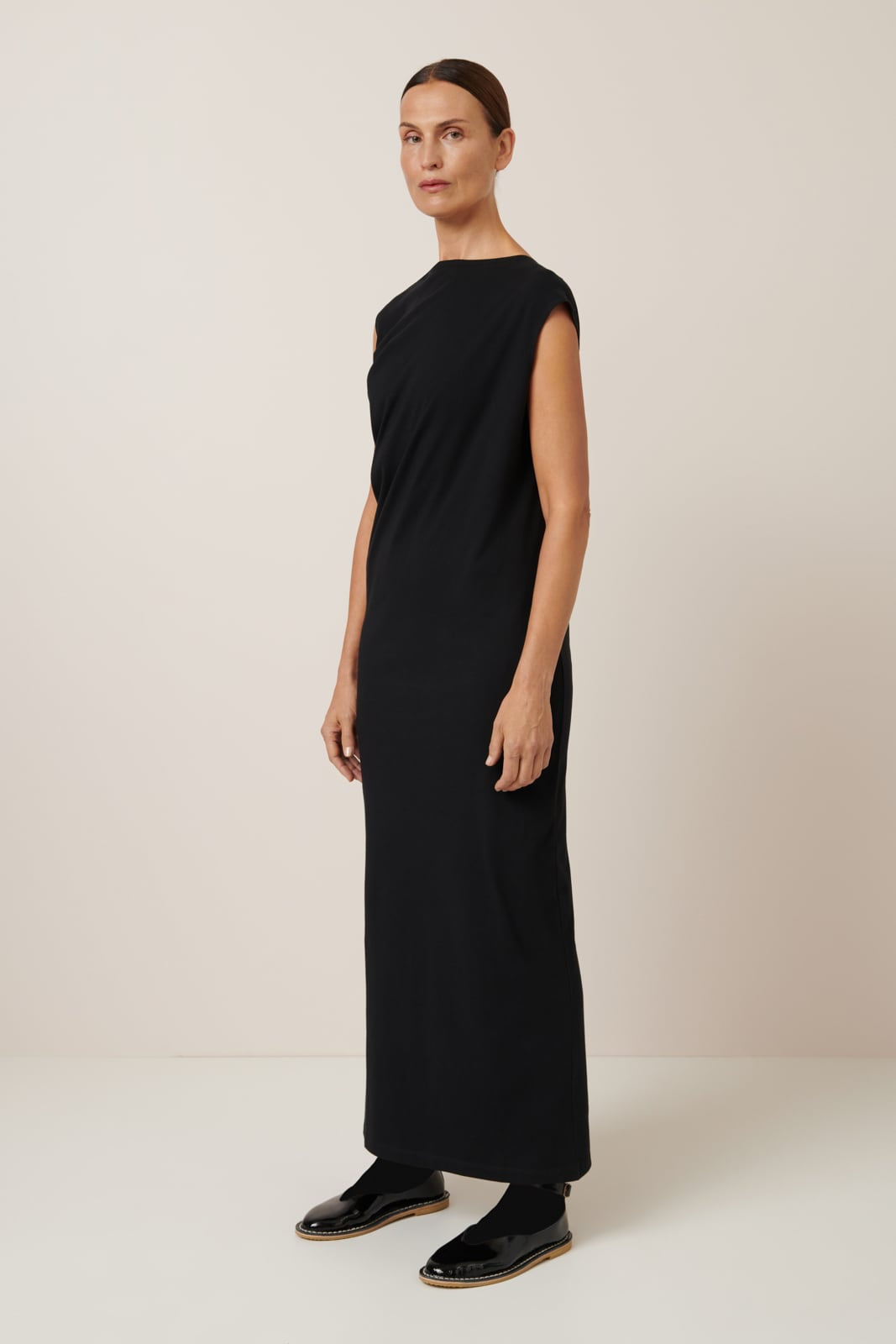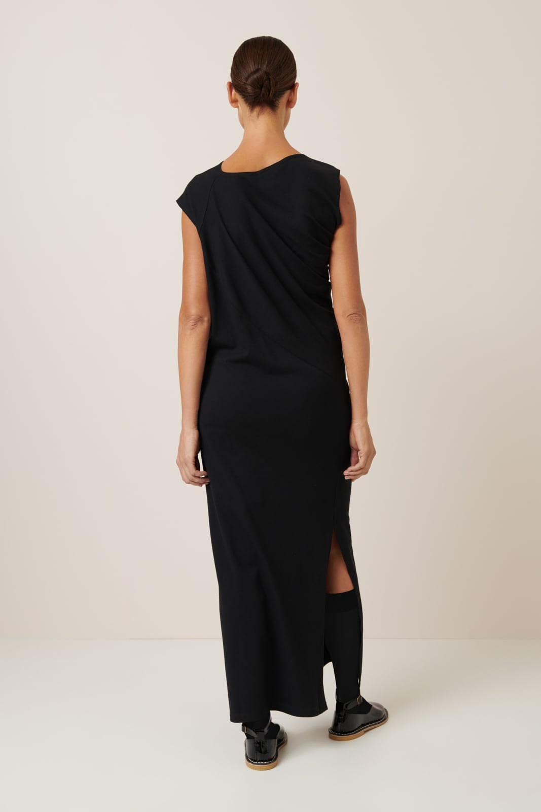 A statement dress that combines comfort and elegance, the Hera Dress is an asymmetric style with a back bias cut panel that creates a unique diagonal drape. A full length, standard fit dress with a side split and a wide neckline. Made in a heavyweight organic cotton jersey.