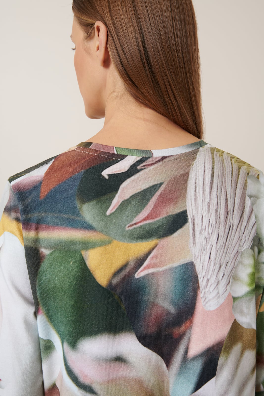 An easy, yet elegant style that is relaxed through the body with close fitting long sleeves. It features a curved, gathered waist that adds fullness. A digitally printed version of our Long Sleeve Gather Dress in our signature Protea print made from midweight organic cotton jersey.