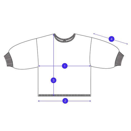 Measured flat across the front of the garment, taken just below the underarm point. This figure has then been doubled to get the full bust measurement.