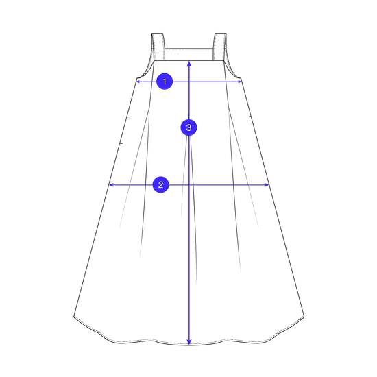 The Study Dress is a slip on style with a high square neckline at the front and back, and wide shoulder straps. With a standard fit through the bust, it falls to a full length pleated skirt with side seam pockets. Made in organic cotton poplin.
