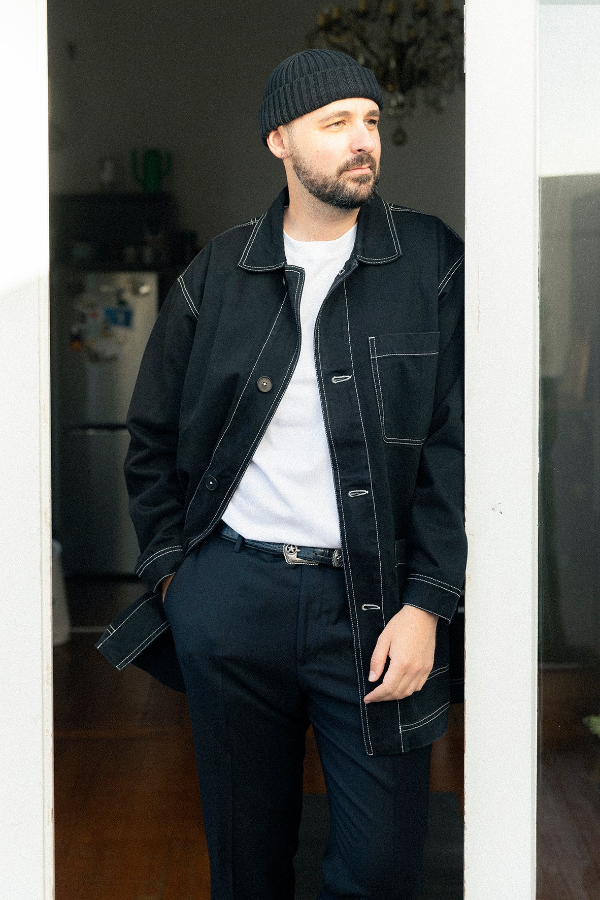Inspired by 90's streetwear, the Alfie Jacket is a relaxed fit, menswear jacket with a longline shape that gives it a unique silhouette.