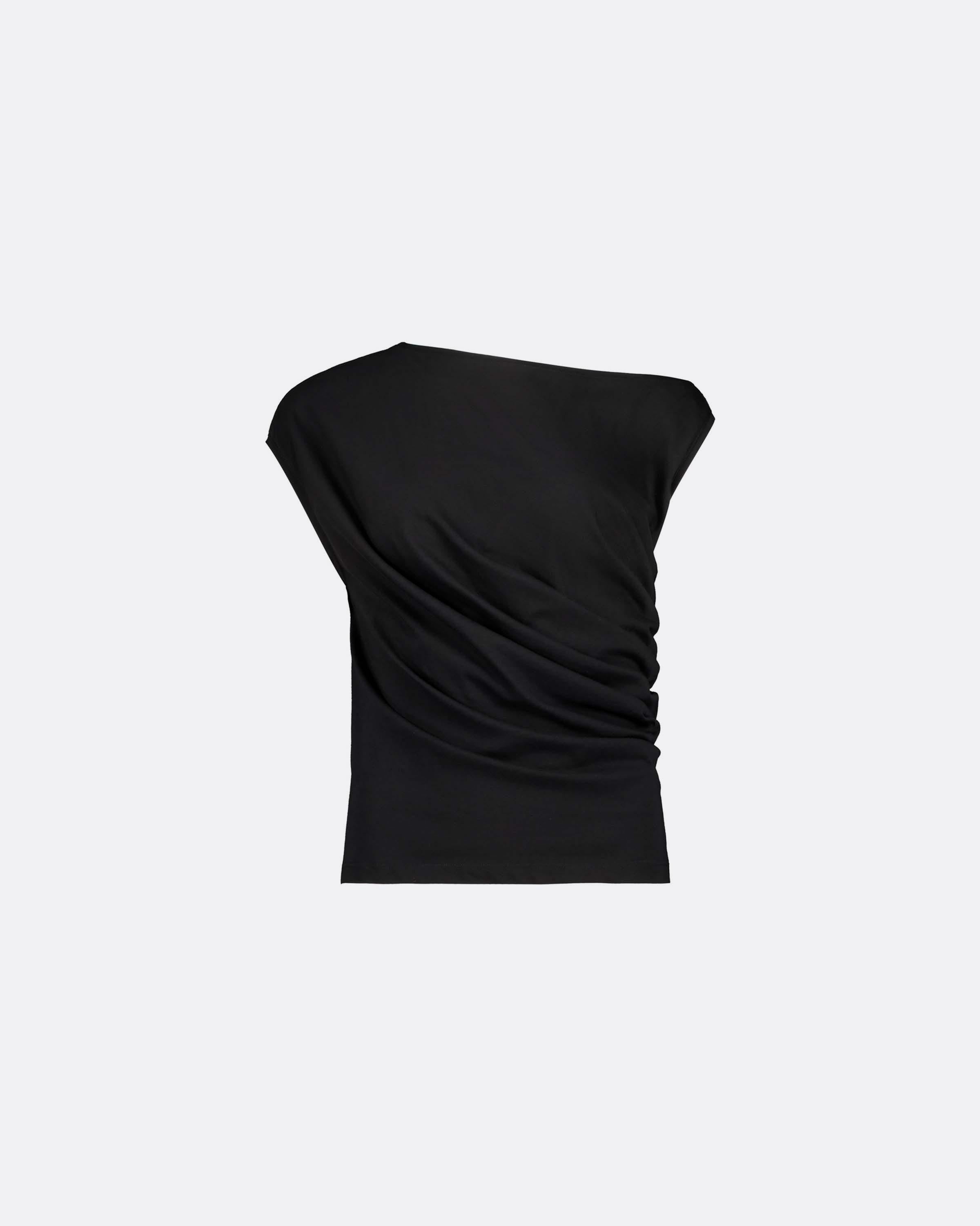 Utilising contemporary pattern-making, the Asymmetric Top features an elegant, flattering diagonal drape. It has a standard fit with a wide, off-the-shoulder neckline and is crafted from lightweight organic cotton jersey,