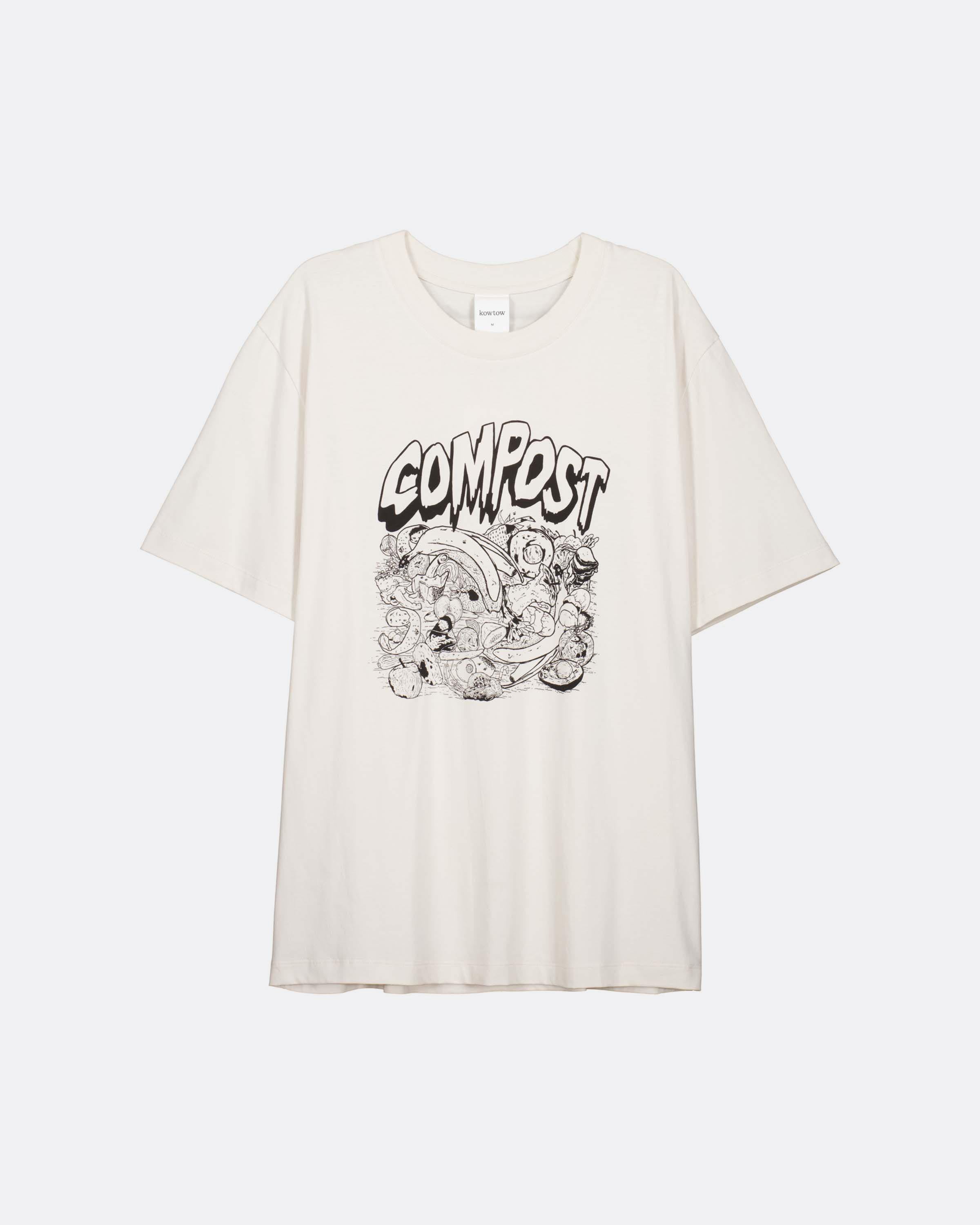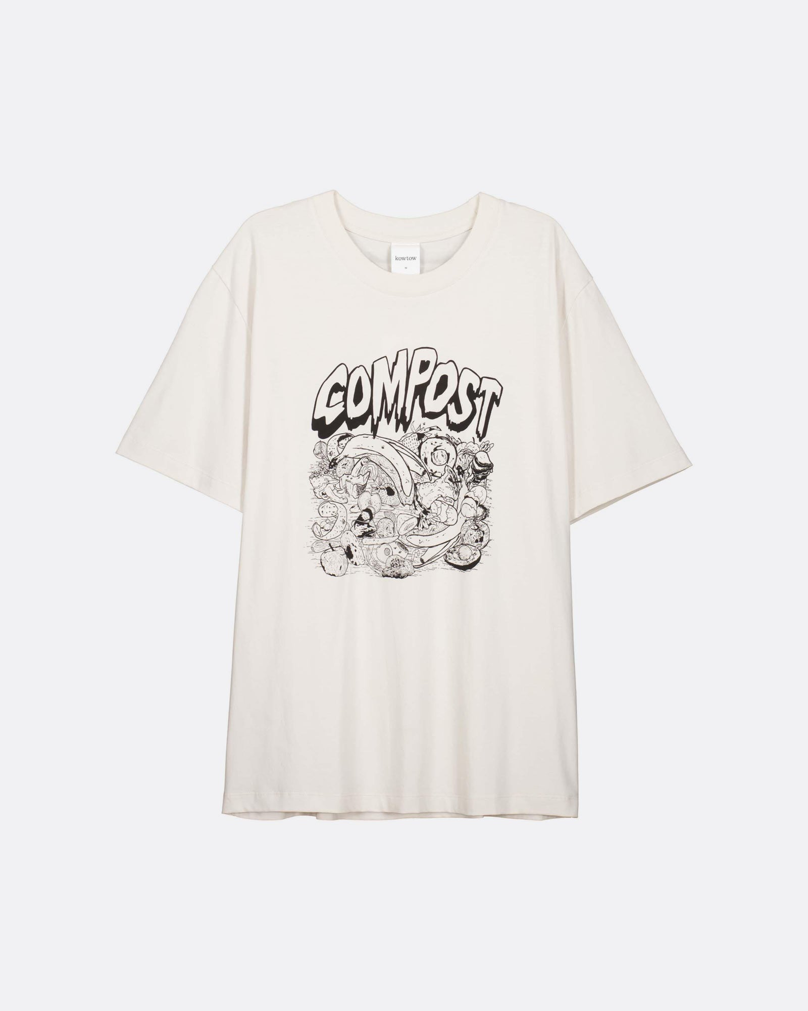 Our Staple Tee, made from mid-weight organic cotton jersey, features a custom illustration by @yeehawtheboys. Inspired by band tees and punk aesthetics, the Compost Staple Tee makes a bold statement, promoting the benefits of composting for our communities and the planet.