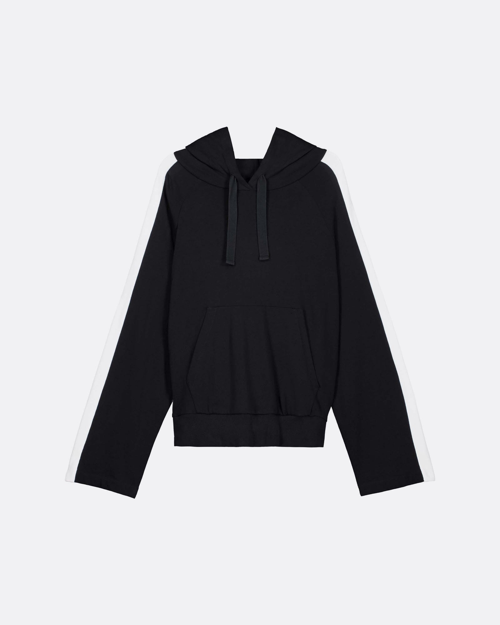 The Contrast Hoodie offers an oversized fit and is detailed with an exaggerated contrast greige stripe down the sleeves. Crafted from heavyweight organic cotton jersey, it features raglan sleeves, a functional drawcord through the hood and a front patch pocket. Wear on its own or pair with the Contrast Trackpant.