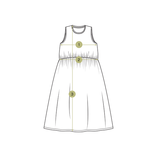 These individual product measurements have been taken from the garment pattern. The bust, waist, waistband, hip & hem measurements have been doubled to show the full circumference.