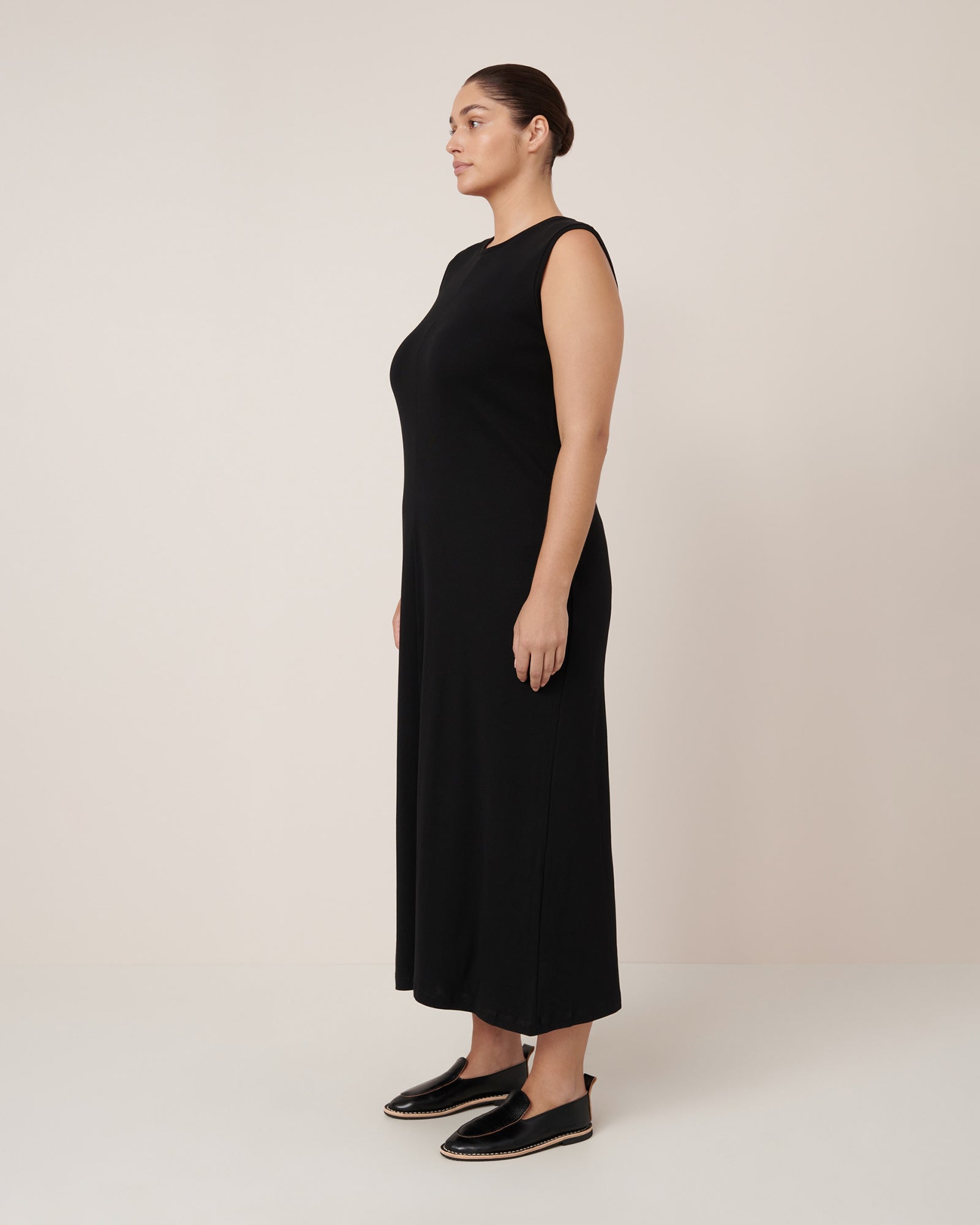 The Still Life Dress is crafted from soft organic cotton jersey rib, offering a close-fitting silhouette with added stretch for comfort and ease. Falling to an elegant ankle-length, this dress effortlessly combines casual ease with the potential to dress up for any occasion.