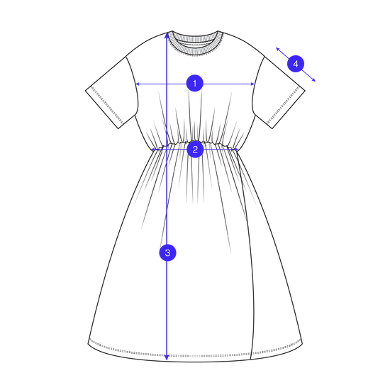 These individual product measurements have been taken from the garment pattern. The bust, waist, waistband, hip & hem measurements have been doubled to show the full circumference.