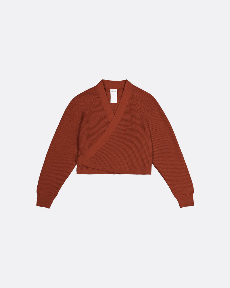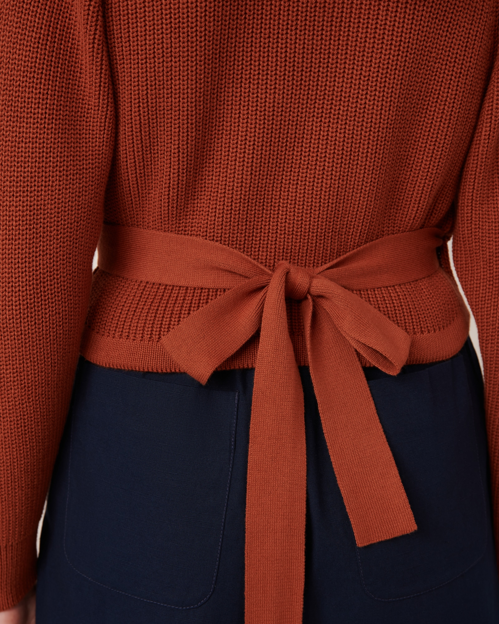 A ballet style wrap cardigan crafted from organic cotton and knitted in a tuck stitch. The Composure Cardigan features a generous fit through the body and a slightly cropped length. Versatile and elegant, it can be worn loose or cinched in at the waist with narrow tie fastenings. Perfect for layering over your favourite dress or jeans.
