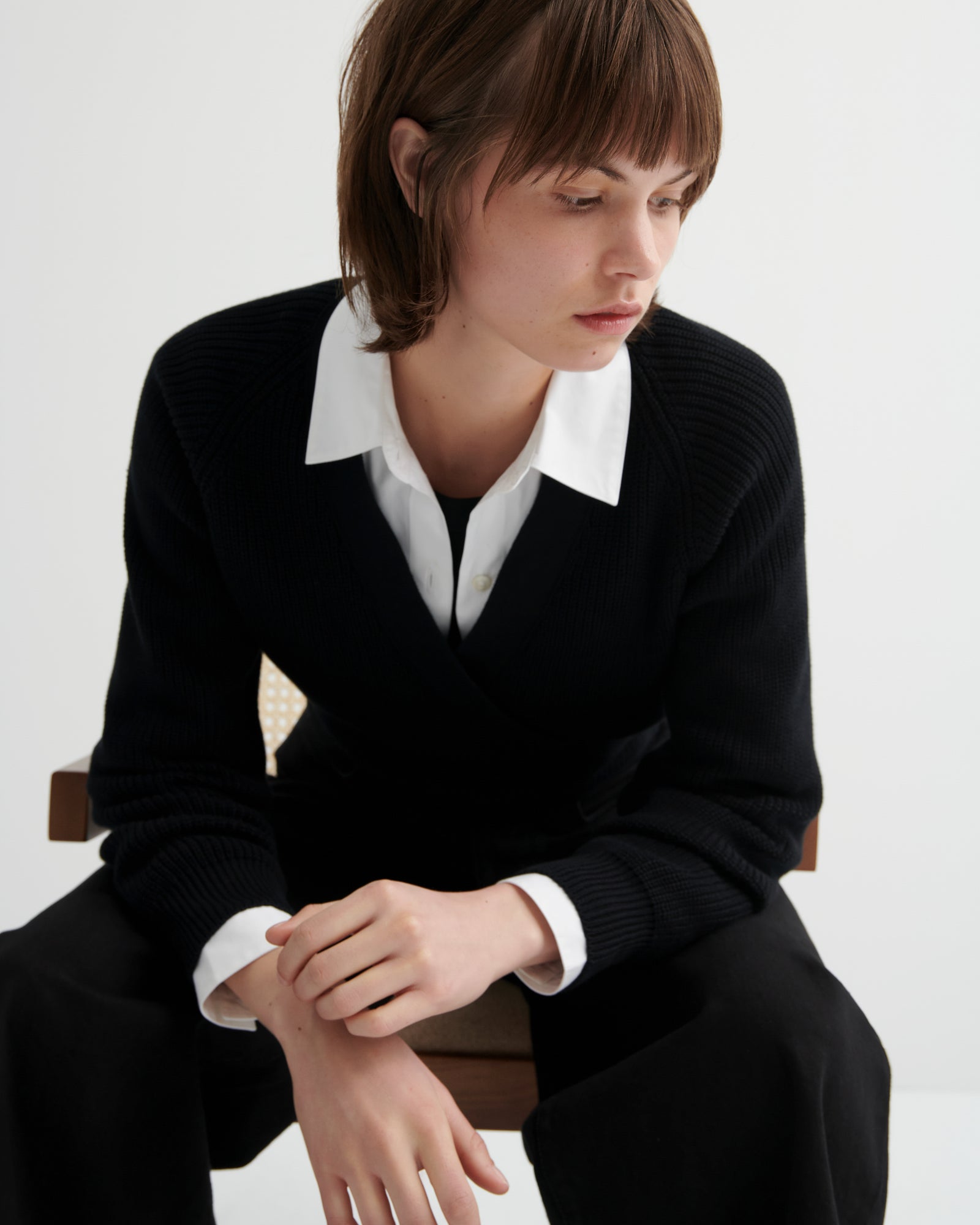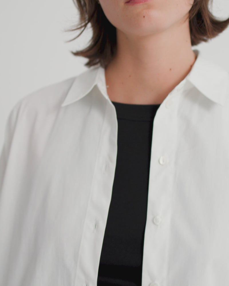 Soft, breathable and thoughtfully tailored. Featuring a standard fit through the shoulders and a slight flare through the body for ease. Featuring a classic shirt collar and cuffs, it’s finished with Agoya shell buttons for a considered, refined touch.