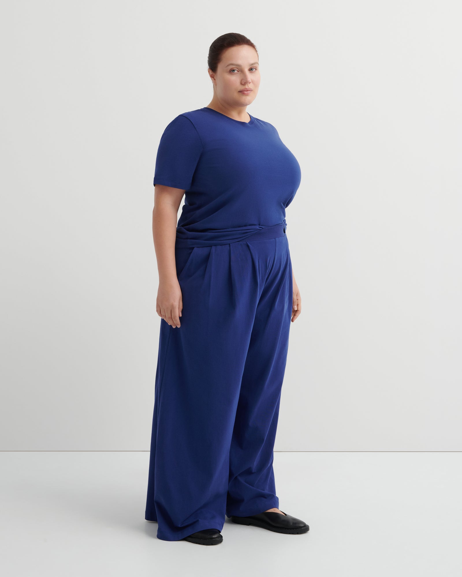 A best-seller for a reason with a full-length, wide-leg silhouette defined by elegant front pleats. Finished with a wide ribbed elastic waistband and side seam pockets, it’s crafted from midweight organic cotton for comfort with quiet sophistication.