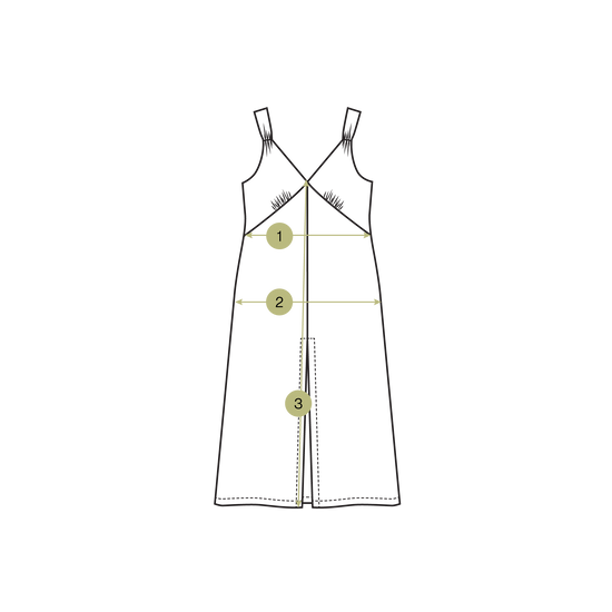 These individual product measurements have been taken from the garment pattern. The bust, waist, waistband, hip & hem measurements have been doubled to show the full circumference.