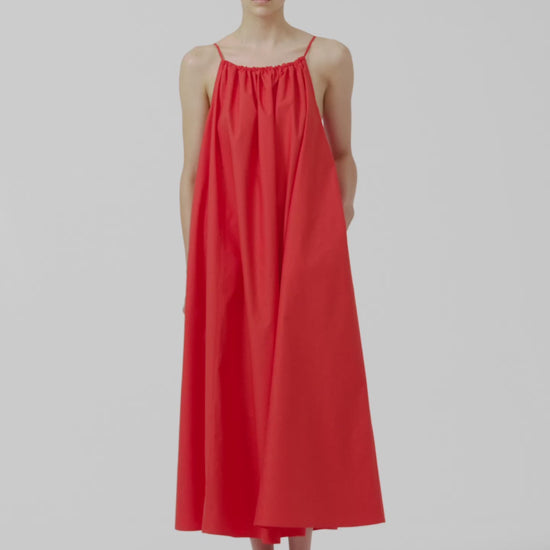 The Sway Dress is a graceful style, designed with thin straps and a relaxed, voluminous silhouette. Crafted from crisp organic cotton poplin shirting, it falls to an elegant ankle length and has side seam pockets for added practicality. Style over your favourite tee or wear on its own for a clean, minimal look.
