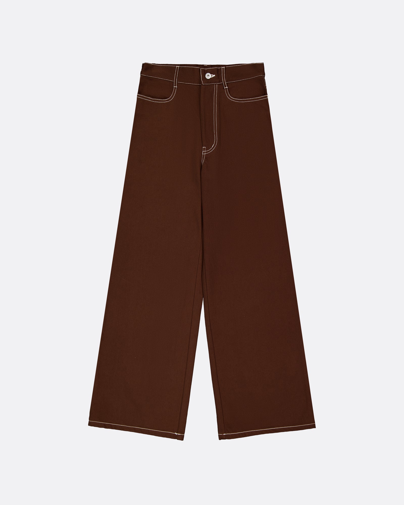 Crafted from heavyweight organic cotton denim with a standard fit and a high-rise, fixed waistband for a flattering silhouette. It features front and back pockets and fastens with a concealed nickel-free tack fly, detailed with contrast white topstitching throughout.